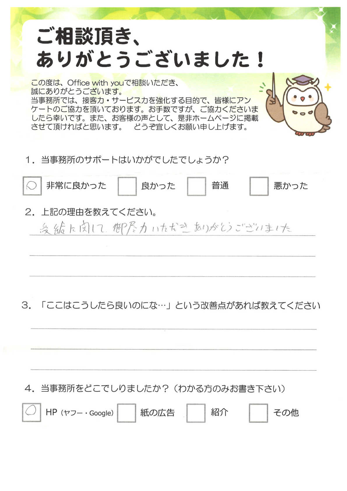 - 9月 19, 2025お客様の声面談の様子について、アンケートのご回答をいただきました⑧